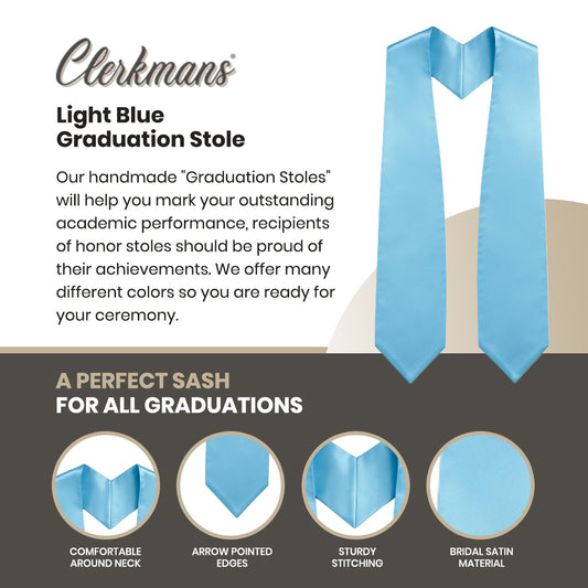 Light Blue Graduation Stole - Sky Blue College & High School Stoles
