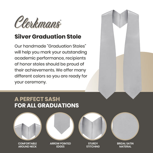 Silver Graduation Stole - Silver College & High School Stoles