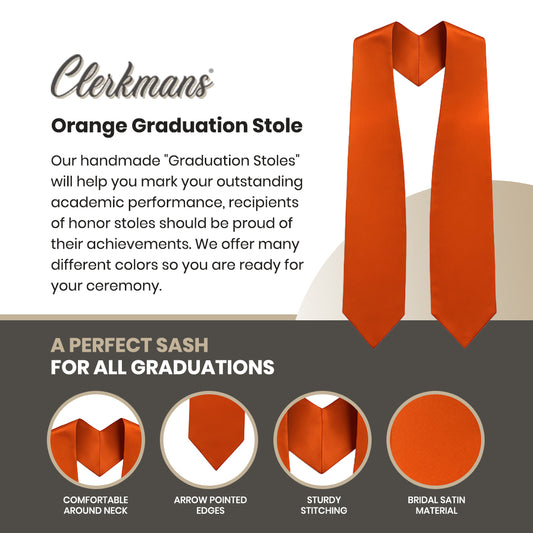 Orange Graduation Stole - Orange College & High School Stoles